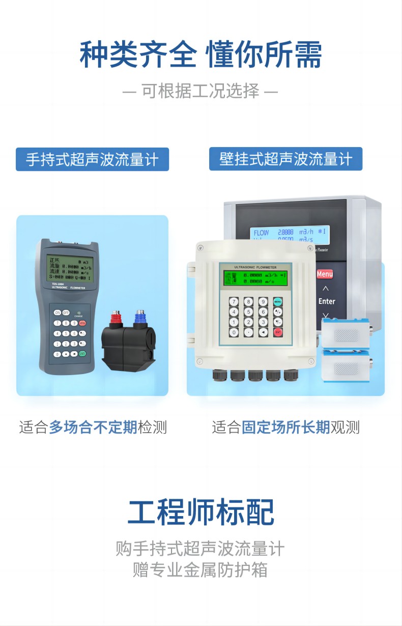 產品描述:聯測超聲波流量計適合相對純凈液體流量的管外測量,尤其是在水流量測量、在工業循環水、空調制冷循環水、原水、高壓水、自來水,污水排放管等廣泛應用。