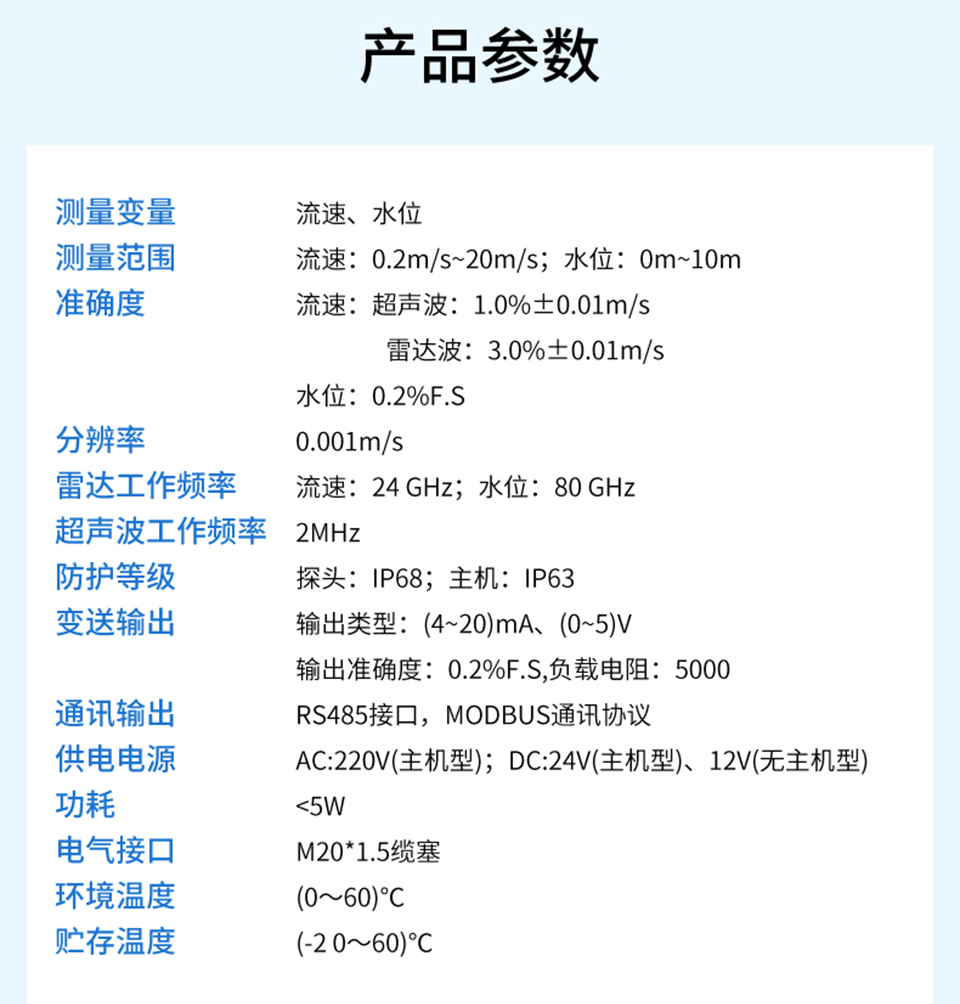 產(chǎn)品描述:聯(lián)測(cè)FAC300超聲波雷達(dá)雙波流量計(jì),一款應(yīng)用在自然水域、渠道或管道中測(cè)量水的流速、水位的產(chǎn)品。產(chǎn)品高度集成了雷達(dá)測(cè)流和超聲波測(cè)流優(yōu)勢(shì),實(shí)現(xiàn)滿管非滿管全場(chǎng)景測(cè)流,同時(shí)兼具雷達(dá)產(chǎn)品頂部安裝運(yùn)維量極低的特點(diǎn),也因此得以輕松應(yīng)對(duì)復(fù)雜惡劣的管網(wǎng)工況。超聲波雷達(dá)雙波流量計(jì)利用雷達(dá)多普勒和超聲波多普勒復(fù)合雙模傳感器來(lái)感知水體流速,同時(shí)通過(guò)靜壓式和電導(dǎo)率傳感器復(fù)合傳感器感知水位變化,從而計(jì)算出實(shí)時(shí)流量。