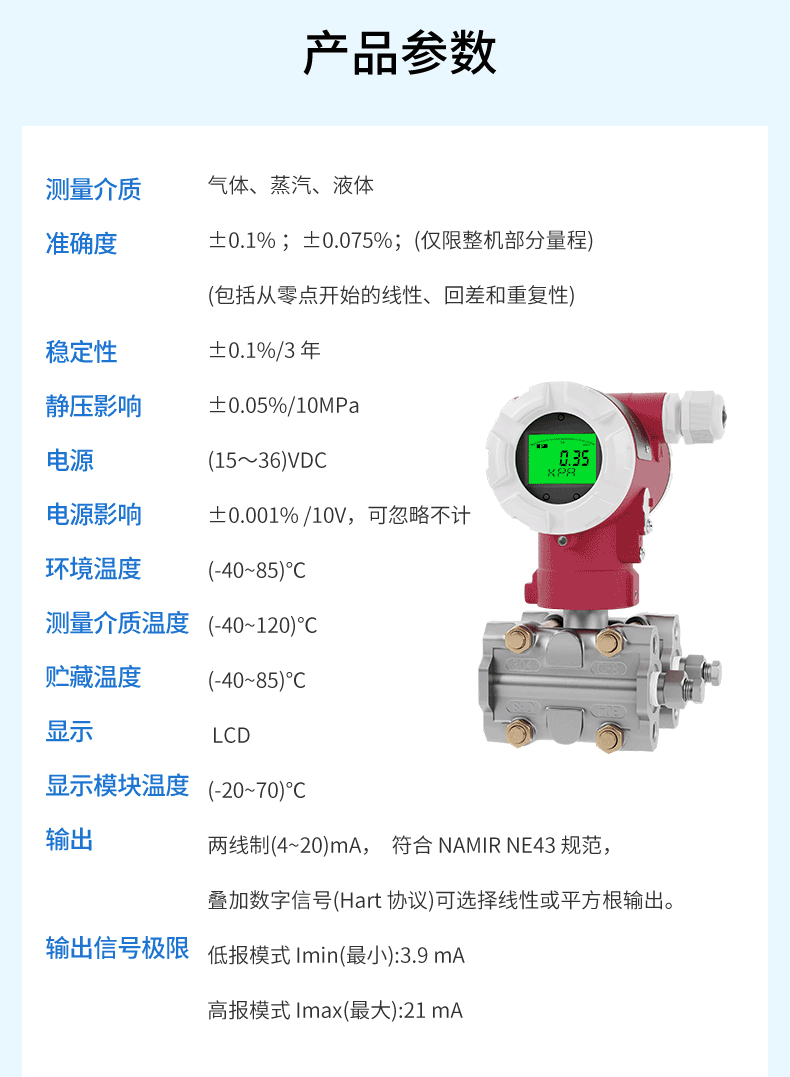 產(chǎn)品描述:智能差壓變送器是采用高精度硅傳感器技術(shù),新型智能高精度變送器,基于通過微處理器的電子部件,實現(xiàn)與現(xiàn)場設備通信。 差壓變送器包括差壓、高靜壓差壓等多個品種。廣泛應用于石油、化工、電力、冶金、水務、釀造等工業(yè)領(lǐng)域。