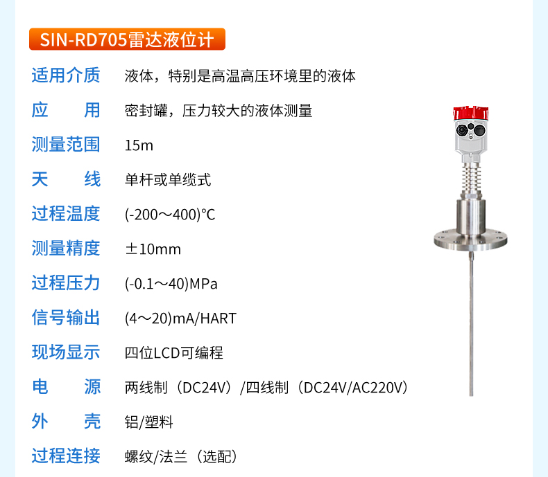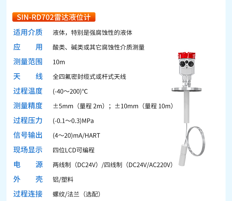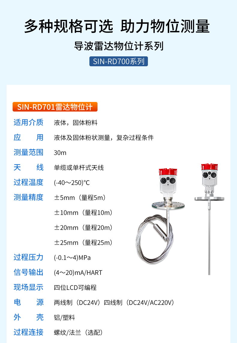 產(chǎn)品名稱:聯(lián)測_SIN-RD701纜/桿式雷達(dá)物位計(jì)_是適用于液體及固體粉狀