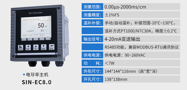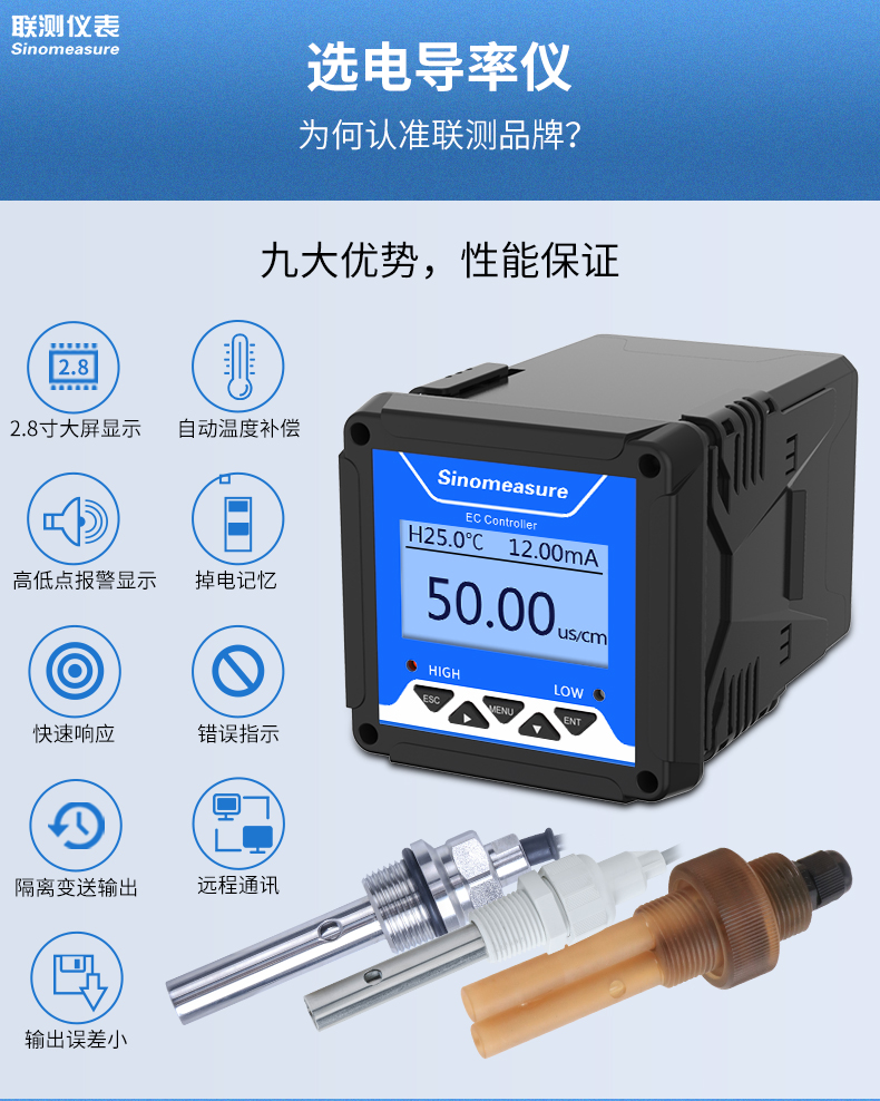 產品名稱:聯測_SIN-EC8.0在線電導率儀_RO過程_水處理_CIP清洗_海水淡化