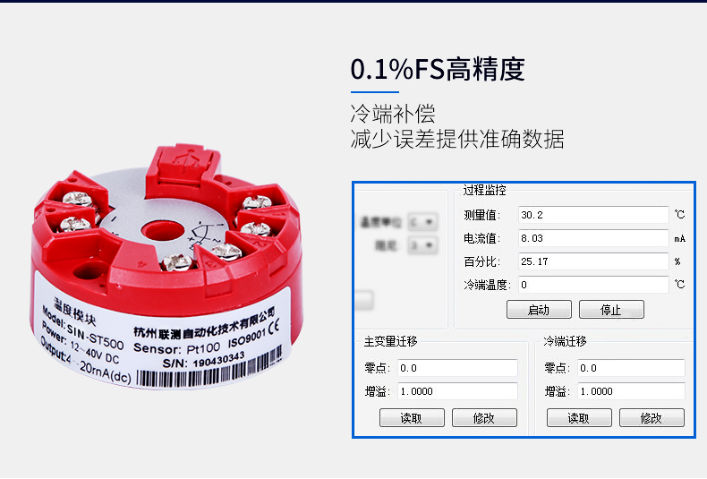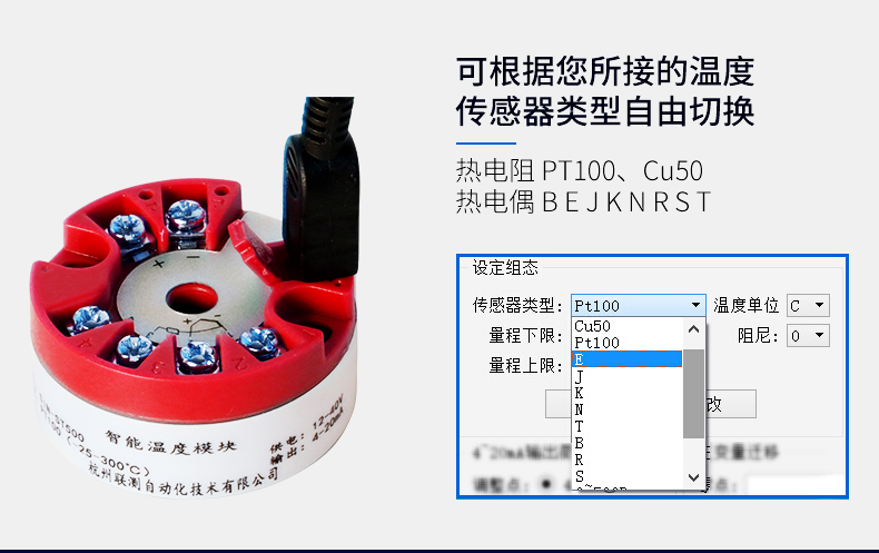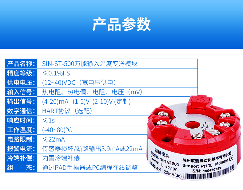 產(chǎn)品名稱:聯(lián)測(cè)_SIN-ST500_溫度變送模塊_熱電阻/熱電偶轉(zhuǎn)4-20mA輸出