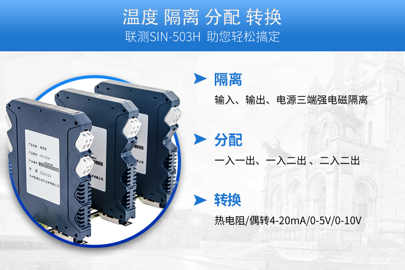 產(chǎn)品描述:將PT100等熱電阻跟熱電偶信號轉(zhuǎn)換成各種電流、電壓等標準模擬量信號,可以與PC機、PLC、DCS等實現(xiàn)工控監(jiān)測連接。抗干擾能力強,遠傳不受其他設(shè)備影響。輸入、輸出選擇范圍寬,準確度高。電源可選擇,導軌安裝便于檢測與安裝。廣泛應(yīng)用于各種對溫度集中測量的監(jiān)控系統(tǒng)中。