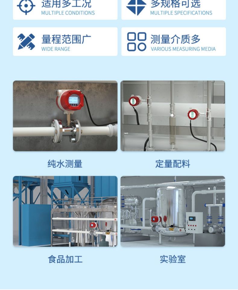 產品描述:液體渦輪流量計基于力矩平衡原理,屬于速度式流量儀表。它具有準確度高、重復性好、結構簡單、壓力損失小、維修方便等優點,于測量封閉管道中低粘度液體的體積流量。在石油、化工、冶金、供水、造紙等行業中具有廣泛的應用。