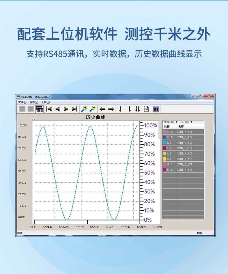 產(chǎn)品描述:本產(chǎn)品為工業(yè)無(wú)紙記錄儀,配置 3.5 英寸 TFT 真彩全視角液晶顯示屏。可以接入多種類型的電流、電壓、熱電偶和熱電阻等工業(yè)標(biāo)準(zhǔn)信號(hào),實(shí)現(xiàn)溫度、濕度、壓力、液位、流量的顯示、記錄、超限監(jiān)控、報(bào)表、數(shù)據(jù)通訊、信號(hào)變送以及流量累積、流量溫壓補(bǔ)償?shù)裙δ堋?蓱?yīng)用在冶金、石油、化工、建材、造紙、電力、食品、制藥、工業(yè)水處理等各個(gè)行業(yè)