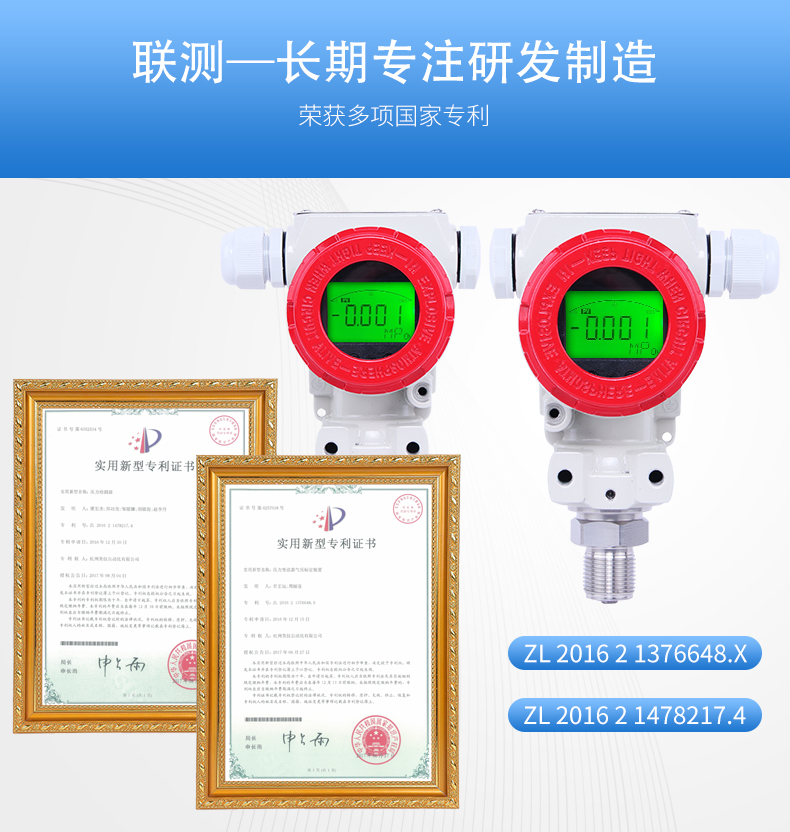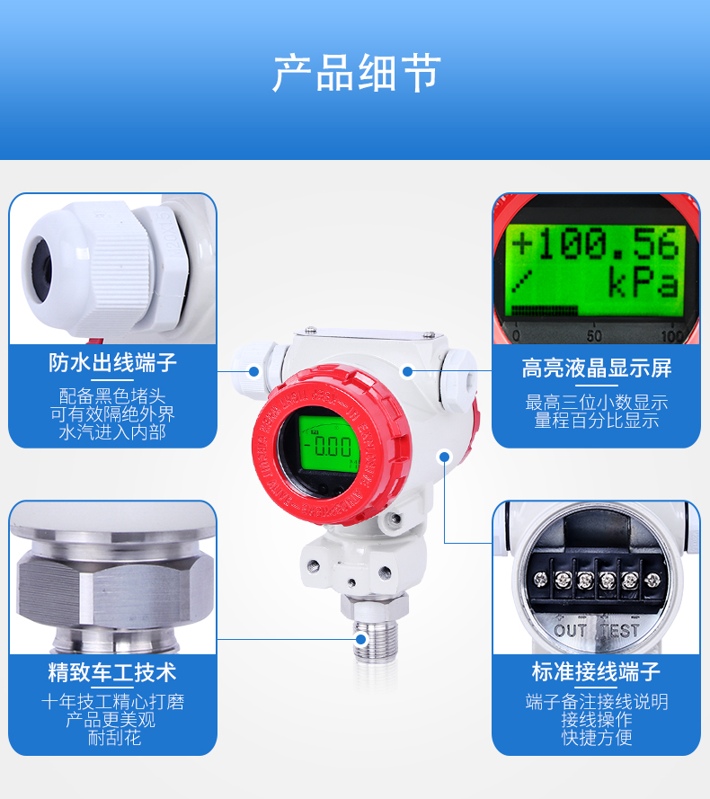 產品描述:壓力變送器壓力敏感核心采用了高性能的硅壓阻式壓力 充油芯體,內部的專用集成電路將傳感器毫伏信號轉換成標 準遠距離傳輸的電流信號,可以直接與計算機接口卡、控制 儀表、智能儀表或 PLC 等方便相連。該系列產品廣泛應用于 工業過程控制、石油、化工、冶金等行業。
