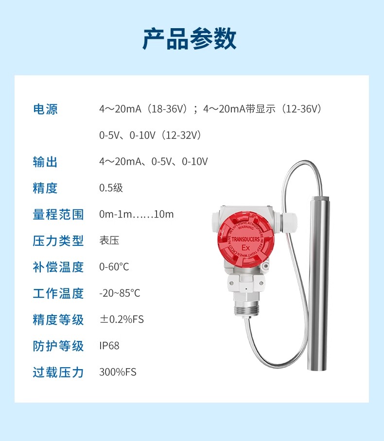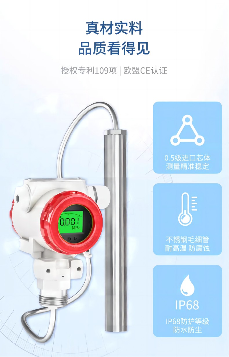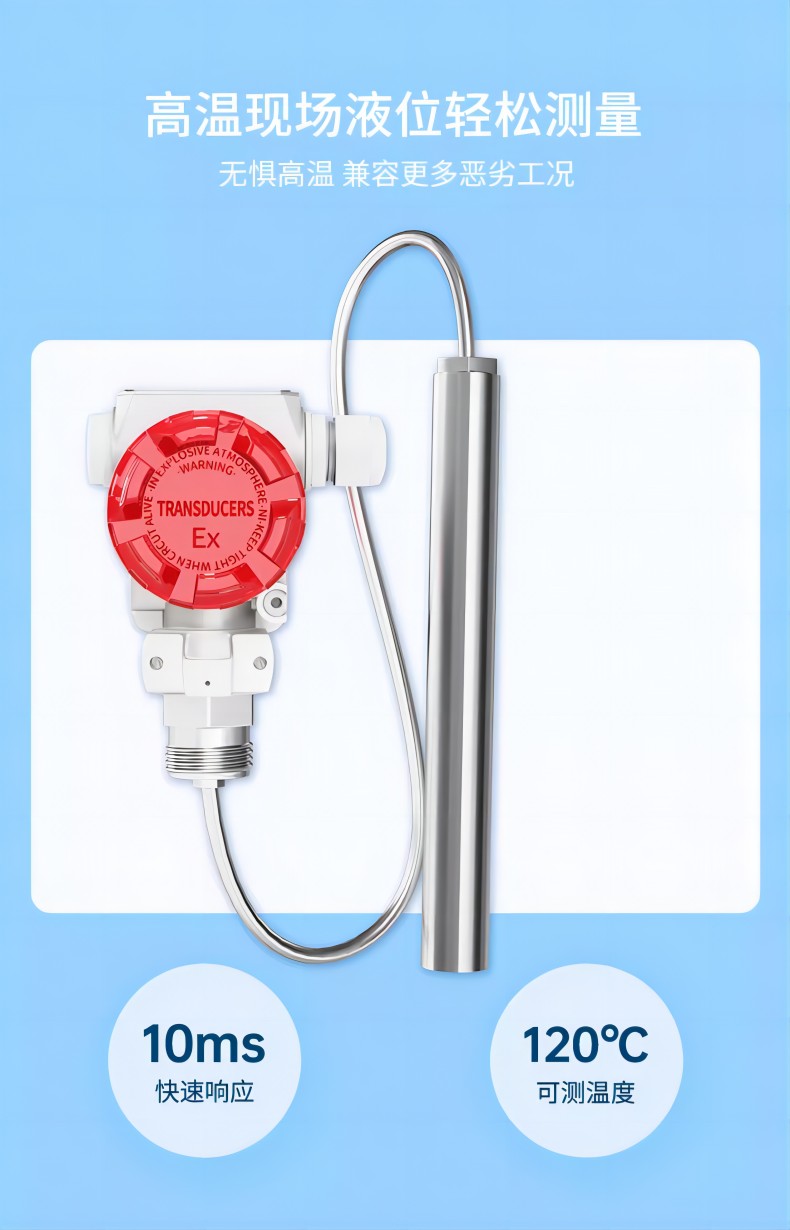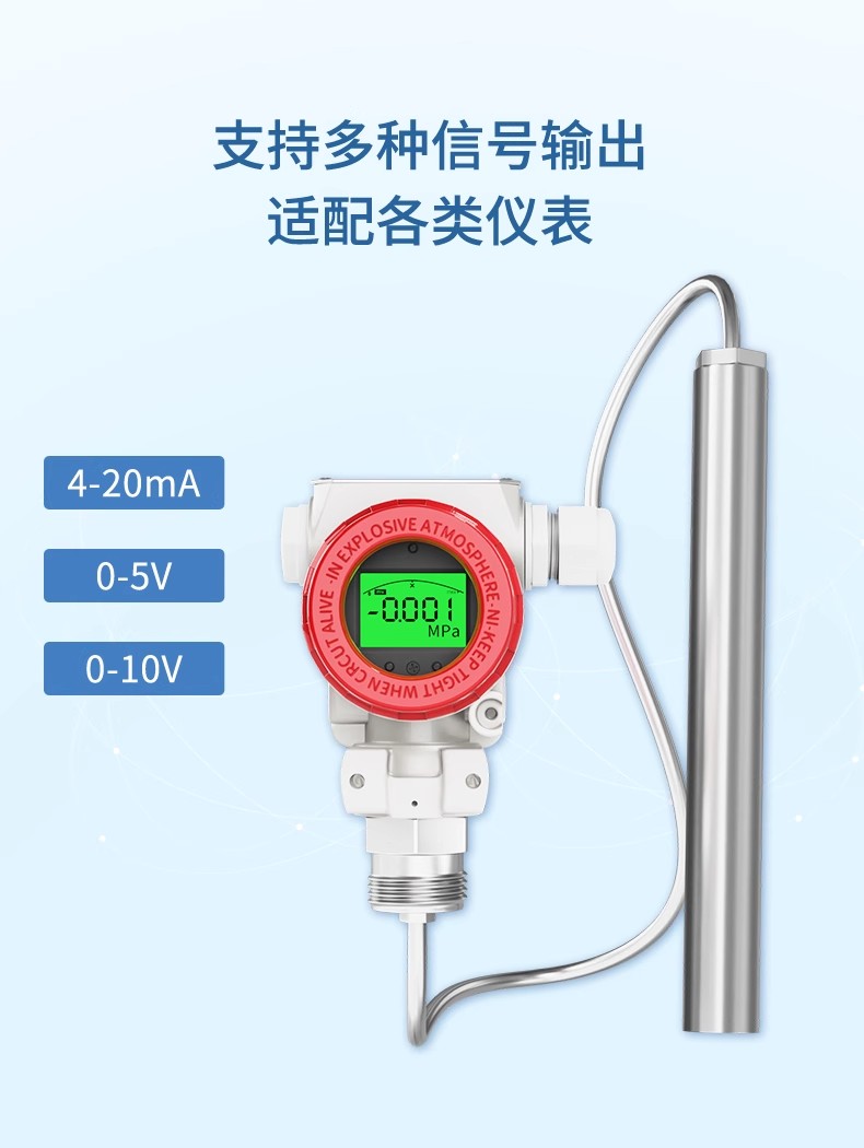 產品描述:集氣桶式液位變送器(下稱變送器)用于測量較高溫度液體介質的液位,原理是被測液體介質壓縮集氣桶內的空氣,空氣壓力通過毛細管傳遞給敏感元件,敏感元件本身不與被測介質直接接觸,因此變送器可以應用在較高溫度的介質環境中,同時,內置微型信號放大處理電路,可以直接與計算機接口卡、控制儀表、智能儀表或 PLC 等連接,進行遠程傳輸。變送器廣泛應用于環保、水利、供水、工業過程控制、變頻供水等較高溫度介質的液位測量。CN2
